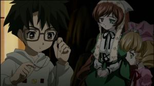Jun gets a strange offer in the mail asking if he will wind or not wind and to circle the answer and a spirit will come from a parallel dimension and pick up the letter from his upper right desk drawer and return with a Rozen Maiden. Jun does so and almost instantly a very ornate carrying case is found in his room and inside is a rather large doll that comes almost to his waist when he stands it up. After Jun winds it up the doll comes to life and almost immediately the two are attacked by a doll whereby Shinku, the doll, offers to protect him if he will swear upon her ring. When he does so Shinku protects him and claims that he is now her servant.